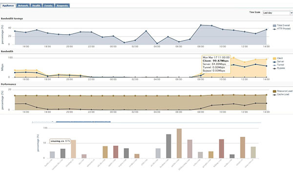 通過部署B(yǎng)luecoat 設(shè)備完美解決了其上網(wǎng)安全穩(wěn)定且可靠的需要。在分析了其現(xiàn)有環(huán)境后,blecoat針對重復(fù)切大量的數(shù)據(jù)運用CF500緩存設(shè)備進行代理和緩存,對于復(fù)雜協(xié)議請求通過Proxy SG進行代理訪問,在提高緩存命中率的同時針對其現(xiàn)有的域環(huán)境相結(jié)合,保證了其日常生產(chǎn)生活的進行。
