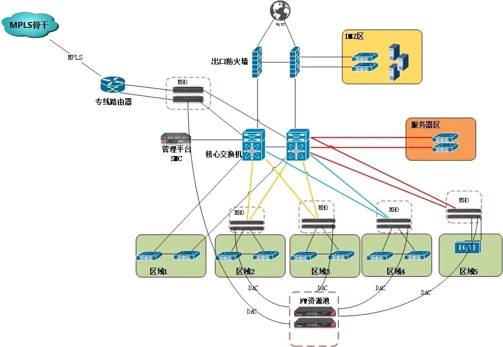 1.部署架構(gòu):原來(lái)的部署架構(gòu),防火墻的放置數(shù)量是規(guī)劃好的,如果想增加防火墻的數(shù)量,需要重新規(guī)劃架構(gòu)。