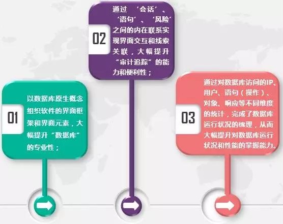 當前,考核數(shù)據(jù)庫審計產(chǎn)品的好壞,最重點的就是看以上三點。這三點使數(shù)據(jù)庫審計產(chǎn)品實現(xiàn)了審計功能高度專業(yè)化,同時延展了其使用價值,成為數(shù)據(jù)庫運維與管理人員進行數(shù)據(jù)庫狀態(tài)監(jiān)控和性能優(yōu)化的重要工具。