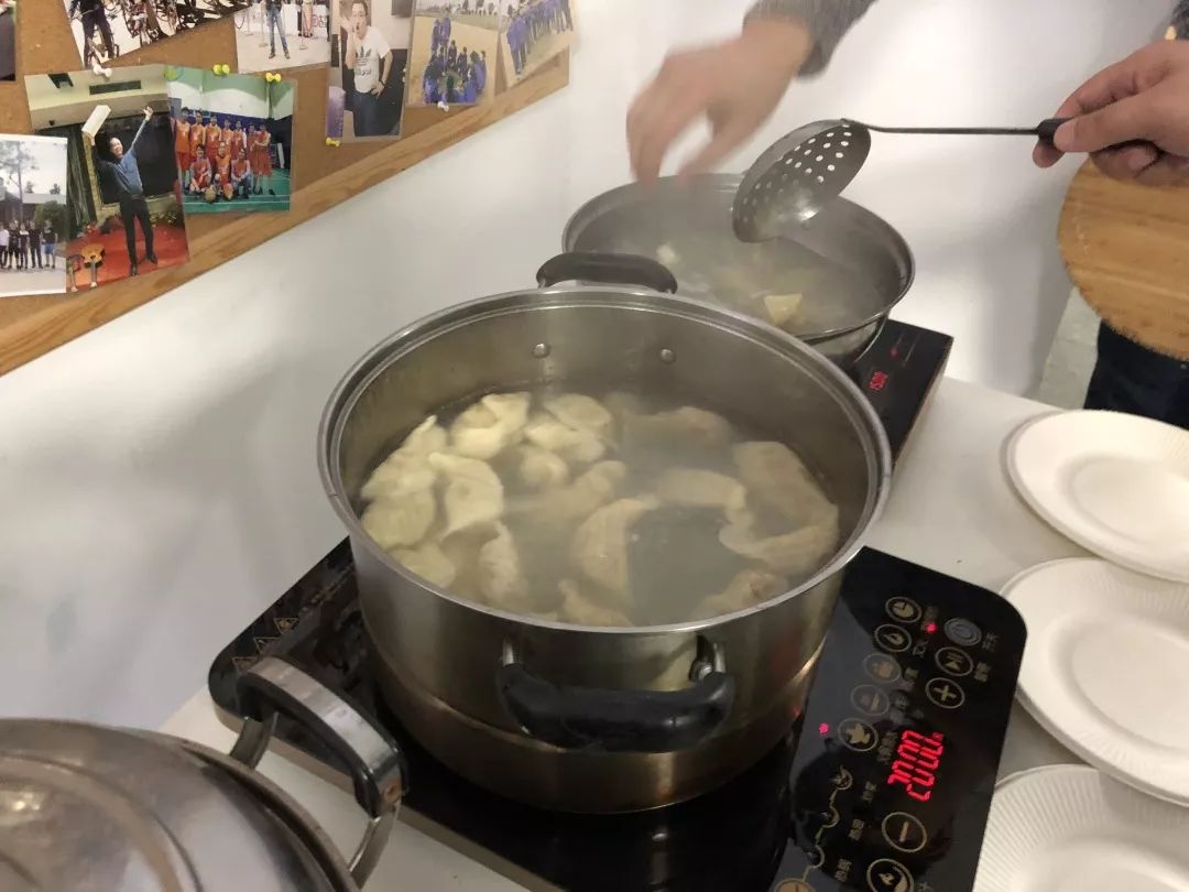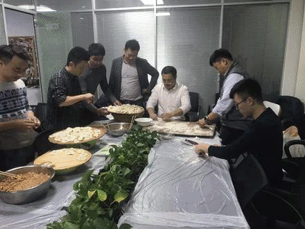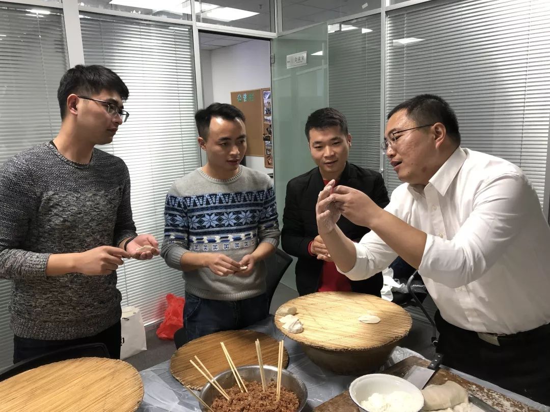 大家都沉浸在包餃子的樂(lè)趣中,揉面的、揪劑子的、搓團(tuán)的、搟皮的,包餃子的,會(huì)包的,不會(huì)包的,都積極參與其中,技術(shù)總監(jiān)更是現(xiàn)場(chǎng)教學(xué),教不會(huì)包餃子但又想?yún)⑴c的小伙子們包餃子。