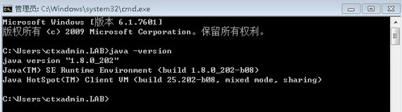 1、 首先安裝jdk1.8.0_202,并且修改Java變量,成功后打開cmd測試顯示如下界面: