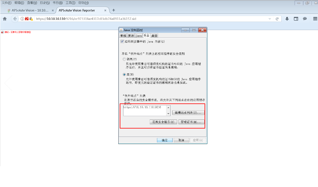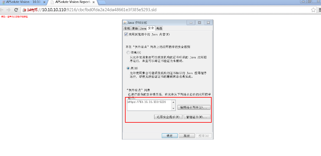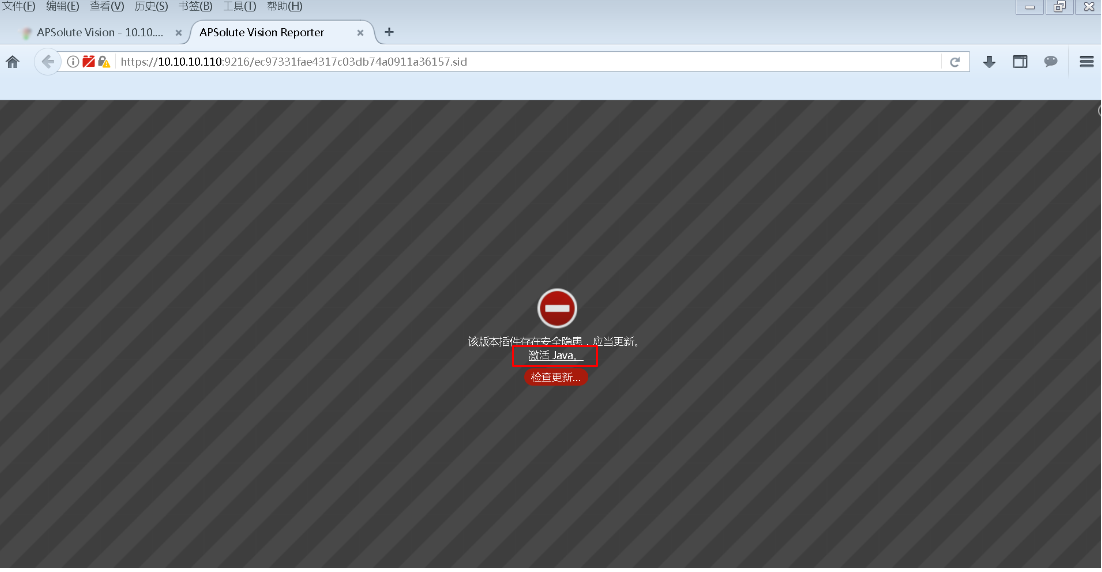 3、 使用Firefox51.0打開APSolute Vision,點擊AVR跳轉(zhuǎn)到以下界面,點擊激活Java,同時將站點加入Java例外站點: