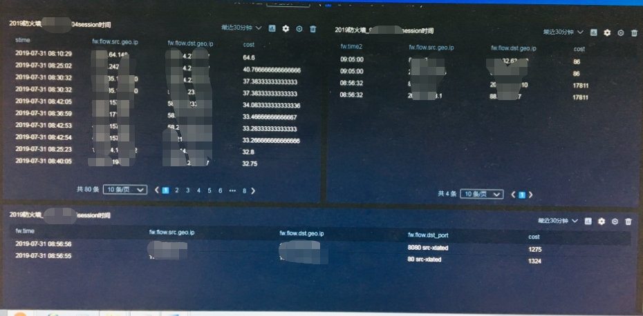部分sockets代理或者http代理要保持很長(zhǎng)時(shí)間的會(huì)話,有進(jìn)行內(nèi)網(wǎng)掃描的嫌疑,因此超過一段時(shí)間的session會(huì)話可進(jìn)行告警。此處需要合并session開始和結(jié)束的兩條防火墻日志,并對(duì)時(shí)間進(jìn)行處理得到session時(shí)長(zhǎng),根據(jù)此值篩選出過長(zhǎng)的相應(yīng)日志。